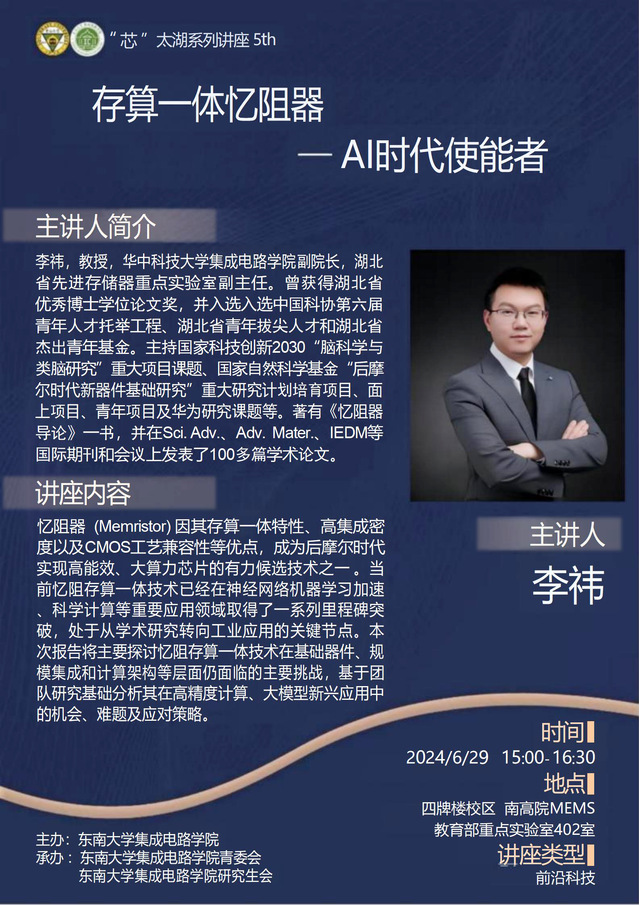 【芯太湖讲座】存算一体忆阻器——AI时代使能者