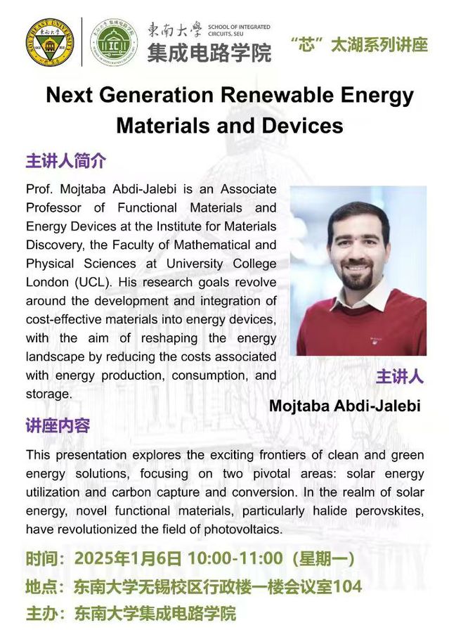 【芯太湖讲座】Next Generation Renewable Energy Materials and Devices