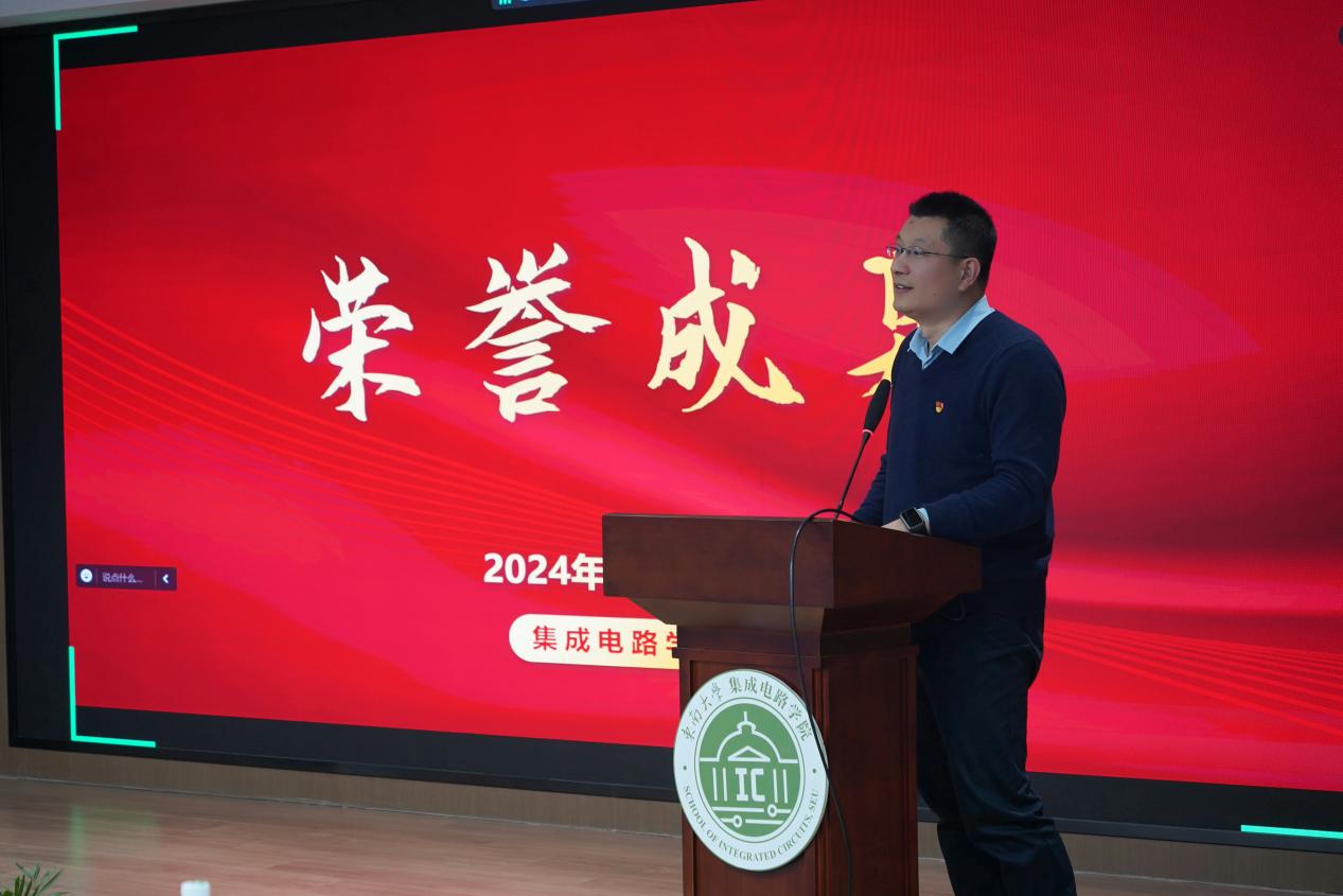 孙伟锋院长做学院年度工作总结报告,总结了2024年学院在党建工作、人才培养、科学研究、师资队伍建设、学科发展、学生工作等方面取得的工作情况与荣誉成果,充分肯定了在全院教师齐心协力奋勇拼搏下,学院获批建设“集成电路设计与集成系统”本科专业,不断完善课程体系、扎实推进人才培养,积极引进高水平师资队伍,推动产学研充分融合,夯实学院在无锡校区的落地办学,全力推进学院内涵式高质量建设,全面提升新学院的综合实力,为国家集成电路学科和行业的发展做出贡献。同时院长针对学院发展目标与任务,对明年工作提出了进一步的要求与期待。