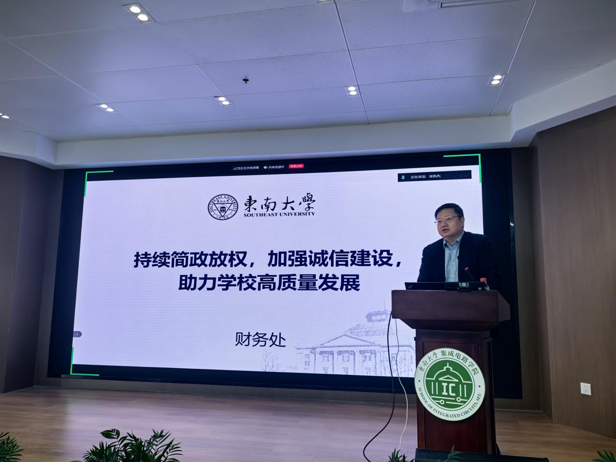 会议由英国365集团官网党委书记张晓坚主持,东南大学财务处处长张晓兵、学校纪检监察机构第一纪检监察室主任陈波受邀作专题报告,学院领导班子成员和全体教职工参加会议。