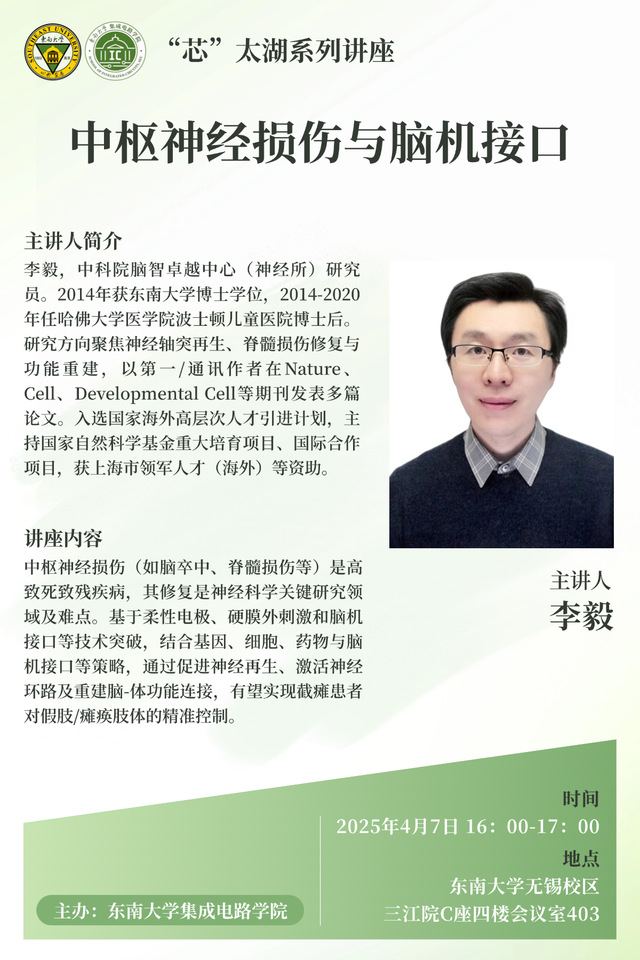 【芯太湖讲座】中枢神经损伤与脑机接口
